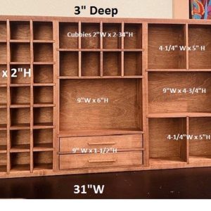 Showcase your treasures with this handcrafted, wall-mounted display shelf. Solid wood construction. Designed to hold your most cherished small items, this versatile organizer features 44 compartments in varying sizes- perfect for crystals, nature finds, miniatures, tincture bottles, and other collectables.
