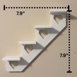 Put your favorite tiny treasures on display with this 4-step diagonal trinket shelf, featuring sweet heart-shaped cutouts under each tier. Its unique slanted staircase design adds a whimsical touch while saving space, perfect for showcasing Smiski, Sonny Angels, or other mini figures/trinkets.