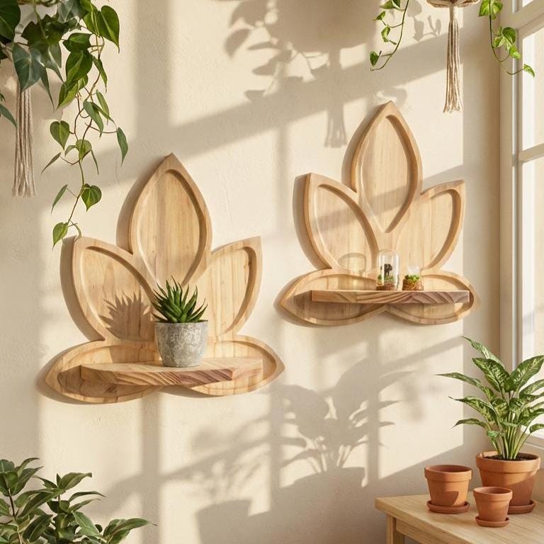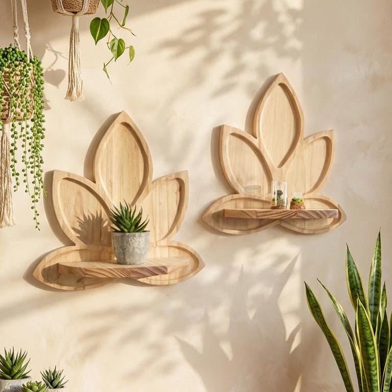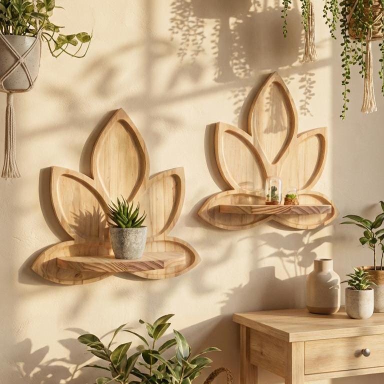 Both decorative and practical, this wooden lotus shelf works beautifully alone or paired in sets for a symmetrical wall display. It’s perfect for plant lovers, mindful living enthusiasts, and anyone seeking a natural, handcrafted touch in their home.