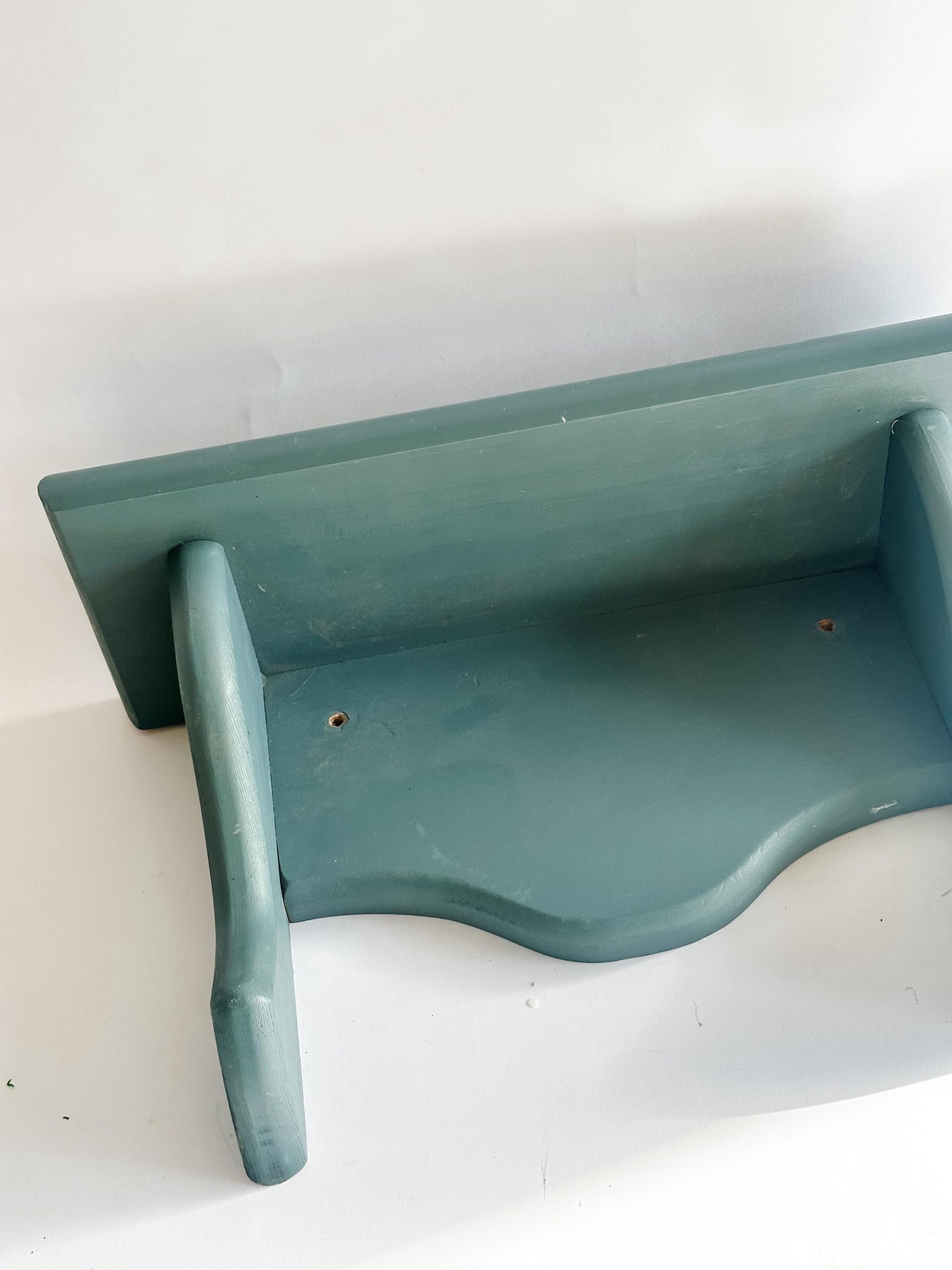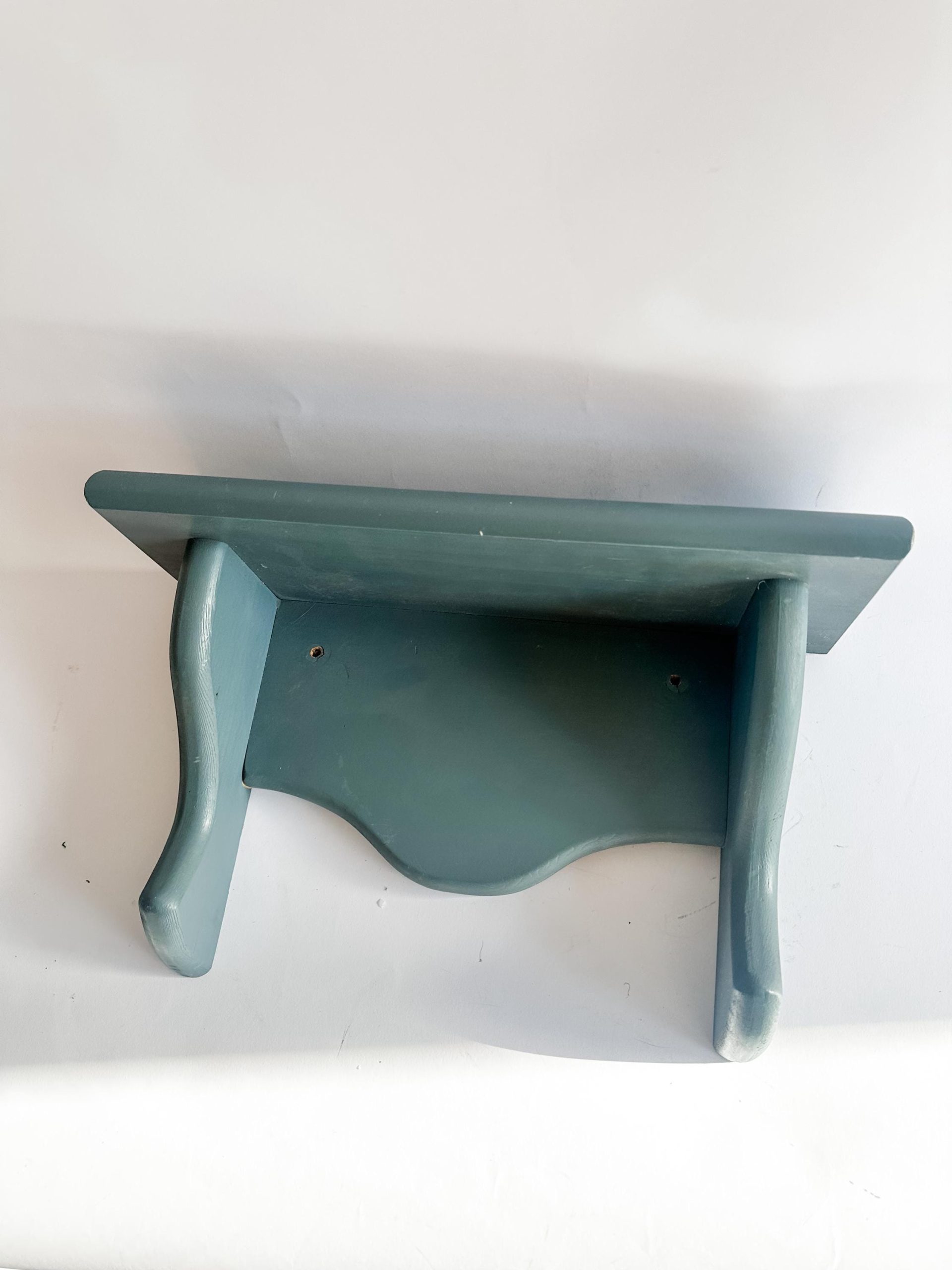 Vintage Teal Wood Wall Shelf | Small Cottage Shelf | Farmhouse Wall Decor | Painted Wooden Shelf | 1980s Home Decor